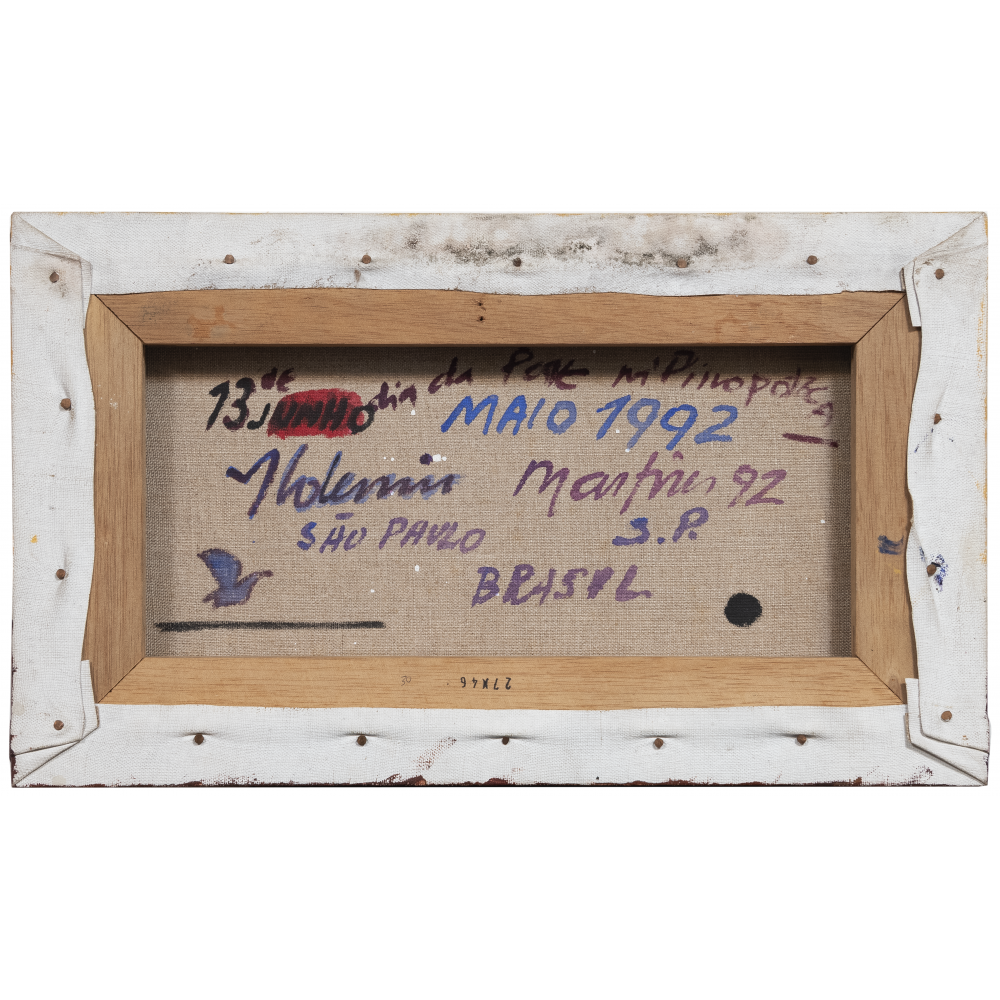 Assinado e datado 92 inferior esquerdo. Assinado, datado Maio 1992 e situado São Paulo Brasil no verso.
