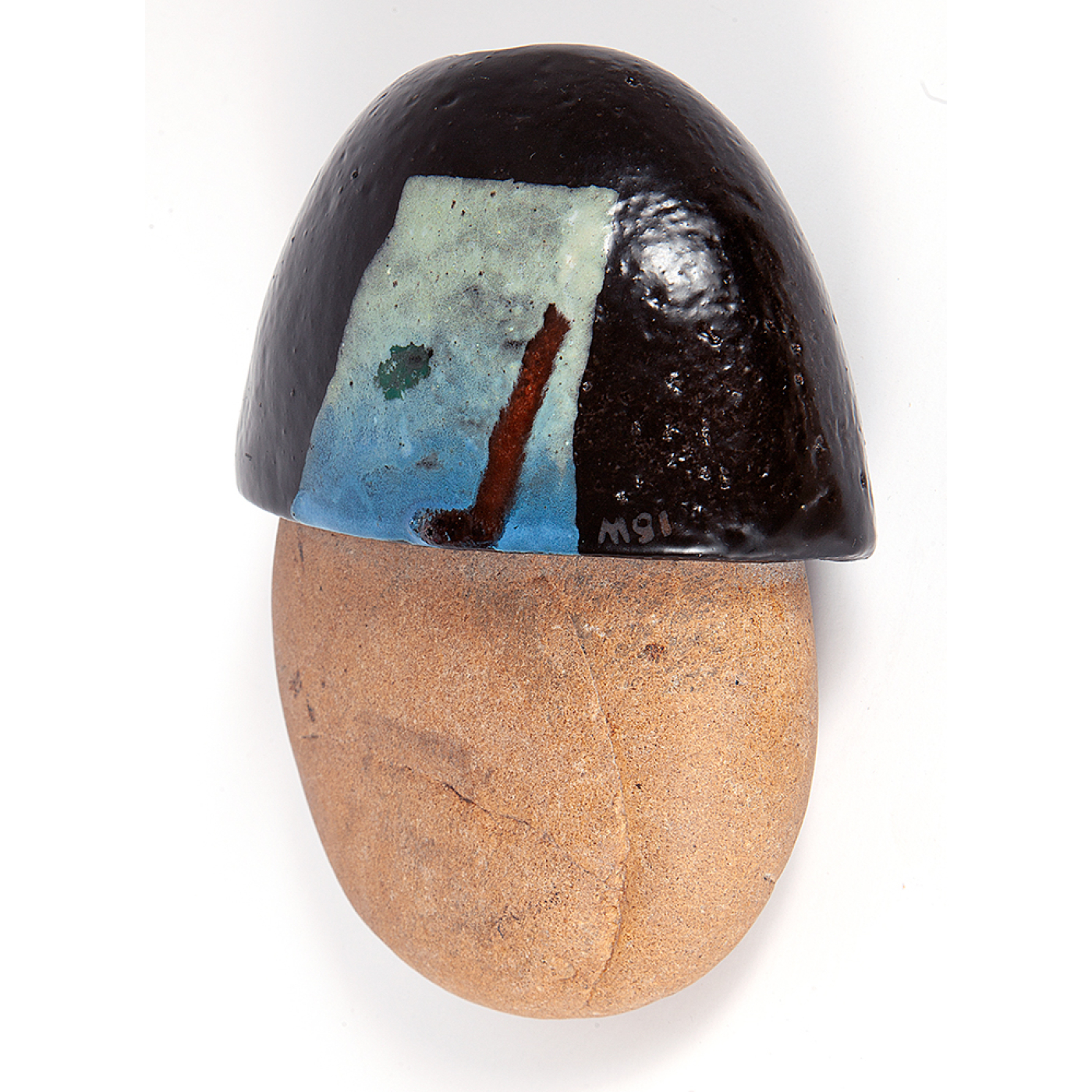 Escultura em Cerâmica Pintada e Pedra · 15 x 13 cm